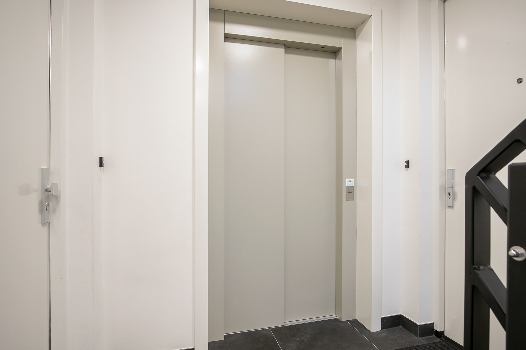 Vanuit de centrale entree is er toegang tot het appartement en tot de lift en het trappenhuis.